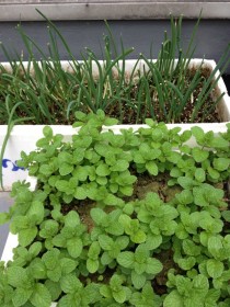 ♧ 屋上で…ネギ & ミント ♧ 土を掘り返す 悪いどら猫も★ いなくなって ♪♪ スクスクと ♧ ミントは2年目よっ ♪♪ クロックナ~ ♪♪