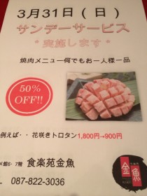 ♪♪ 年度末日曜日 ♪♪ お肉お得日開催しますよ ☆ 29日満席だったので ★ お席早い者勝ちですよ ♪♪ ムォ モグrレ ♡