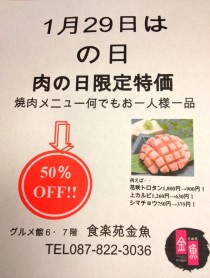 ♪♪ 本日開催します ♪♪ 焼肉メニューお1人様1品 ☆ 50%off ☆ どうぞお早めに ♪♪ テーブル席限りあるので ♪♪ ペゴパヨ ?
