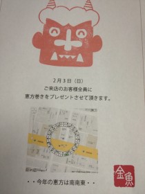 ♨ 本日ゆったり日 ♨ ご来店ご飲食のお客様に ♡ 恵方巻きプレゼントよっ ♡ 恵方の 南南東の方に向って ♪♪ 召し上がれ ♪ ヘンボケ ♡